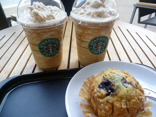Varsinn Frappuccino Espresso och en blåbärsmuffins.